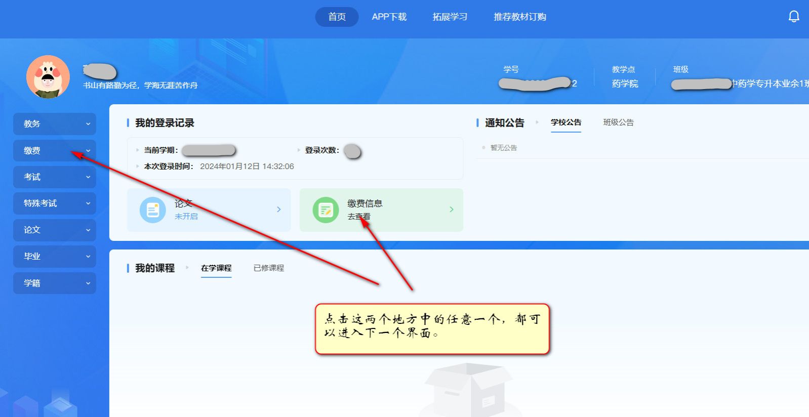 注意:网上交费只支持电脑打开页面,手机扫码支付,手机端无法独立完成缴费。如手边没有电脑,可通过他人登录你的账号,把支付二维码截图发给你,你再扫码支付,需要注意的是,此种方法不适合微信支付,要采用支付宝支付。如果电脑上也无法弹出缴费框,请更换火狐或谷歌浏览器重试。
